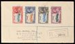 | 3979 Click for more photos | Montenegro: 1941 Registered cover franked CRNA GORA opt set of 10, tied by 'Cetinje 24 x 41' cds to Croatia with Zagreb arrival b/s. SG 28-37. Sass 15-23 & A9 cat €240 for set on cover. Attractive. | AVAILABLE at A$130 | ||