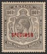 | 3234 Click to enlarge photo | 1896 Arms £25 black & green, wmk Crown CC, opt SPECIMEN. VF fresh MLH. Scott 42s cat US$425. SG 42s cat £500 (normal cat £30,000). (P) | AVAILABLE at A$375 | ||