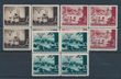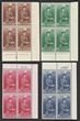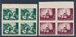 | 1122 Click to enlarge photo | 1937 NSW Sesquicentennial set 2d (2), 3d & 9d Ash imprint blks of 4 with both 2d imprints (38¼mm & 42¾mm), 9d has variety 'roller shift to right frame, top frame over 'AU' & '88'. Fresh VF MLH. SG 193(var). ACSC 175-77zb cat $465. (16). | SOLD at A$100 | ||