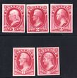 | 737 Click for more photos | 1½d Red ACSC listed varieties collection inc 'retouch shading lines left of crown' (16L22 - this is also coarse mesh paper), 'no top of crown' (21R9), 'notch BF' & 'crown flaw' (22L-7), 'HALE PENCE' (22L22), various 'dark band', 'retouch LVT' & early/late prs showing 'no retouch' & 'retouch lower left corner' (24R41 & R42), 'neckless emu' early & late (25-28R30), 'triangular flaw RVT' (29L7). All diff, few blks, coarse mesh paper (2). Mainly fresh about 2/3 G-VF MLH, 1/3 F-VF MUH, few spots. SG 77(var). ACSC 89(var) cat $2200+. (40+) | SOLD at A$200 | ||
