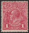 | 2847 Click to enlarge photo | 1912-21 KGV 20R black & purple/red. Superb fresh MLH. Scott 55 cat US$500. SG 59 cat £475. (P) | AVAILABLE at A$230 | ||