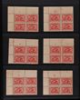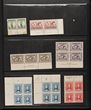 | 1027 Click for more photos | 1932-65 pre-decimal imprint blks of 4-8 collection on hagners inc 1935 Silver Jubilee 2d Ash imprint with 'line above B' (166(3)zb). 1937 Zoological KGVI 1d to 1/4 inc 9d CofA wmk perf 15x14 no imprint blk, 1930s 1/6 Hermes, 1936 SA Centenary set 2d to 1/-, 1936 Cable set 2 & 3d with 2d Ash retouch varieties, 1947 Defs to 1/6, 1940 AIF 6d McCracken imprint blk, various gutter blks, cnr blks with diff perforations etc, few imprints have thinnish paper plus 3½d KGVI maroon with large part imprint in upper margin & 3d scarlet small part. F-VF MUH, about 30% F-VF MLH. SG var. ACSC cat $2200+. Large collection, fairly complete from 1946. (120 imprints) | SOLD at A$475 | ||