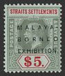 | 2953 Click to enlarge photo | Johore: 1904-10 Sultan $50 green & ultramarine, wmk rosette. Superb MUH, with darker never hinged original gum, bottom marginal. Scott 74 cat US$425 for M, SG 76 cat £475 for M, should be at least double, £950 MUH. (P) | AVAILABLE at A$500 | ||