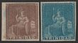 | 3346 Click for more photos | 1892-93 Arms £5 sage-green & £10 brown, no wmk. VF fresh UN (ex BSAC archives, which flooded during WWII bombings). Scott 18 &19 cat US$4775. SG 12 & 13 cat £4350. Rare genuine unused top values. 2020 Ceremuga photo certs (2) (P) | AVAILABLE at A$700 | ||