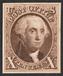 | 3666 Click to enlarge photo | 1847 Washington 10c grey-black, plate proof on card, imperf, in issued colour. Superb UN as made, 4 margins. SG 2(p) cat £35,000 as normal. Sc 4PU cat US$250 (normal cat US$37,500). (P) | AVAILABLE at A$220 | ||