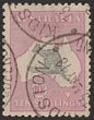 | 657 Click to enlarge photo | 10/- Grey & deep aniline pink, wmk INVERTED. F-VFU, strong colour. SG 43aw cat £1600=A$3200. ACSC 48Ba cat $3750. Ex Sandy. (P) | AVAILABLE at A$700 | ||