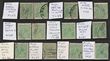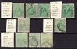 | 883 Click for more photos | ½d Green used collection of shades & varieties on hangers inc all listed shades, inverted wmk (9), various paper thickness & major varieties & plates 4-7 inc 'spot on emu's back' (4L1), 'spot after 2' (4L2), 'accent on E' (4L60), 'spot on kangaroo's back' (5L16), 'thin fraction' (5R43), 'handless & neckless emu' (6L52-53), 'SW cnr broken' (7L44) etc. Mostly GU-VFU. SG 48(var). ACSC 65(var) cat $2300+. (95+) | AVAILABLE at A$140 | ||