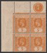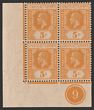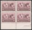 | 3221 Click to enlarge photo | 1948 KGVI Silver Wedding 20/- purple LR cnr blk of 4. VF fresh MUH. SG 49 cat £480+, plus premium for multiple. (P) | SOLD at A$300 | ||