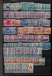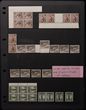 | 41 Click for more photos | 1860-1970"s messy accumulation crammed into 32 pg Prinz s/book inc States - TAS 1859 QV 4d blue imperf, 1880-90s WA Swans to 1/-, Kangaroos (100+) to 10/- inc 6d chestnut 'broken leg', 3rd wmk 2d & 3d inv wmks, KGV ½d-4½d (total 200+) inc 1d red (70), 3d blue (40+), 5d brown (40+), several varieties noted inc 1d red Die II, various 1940 KGVI Defs inc 3d blue (70+), various John Ash imprint blks of 4 - 1d, 1½d, 2d, 1/-, 1948 Robes 5/- & 10/- by Authority imprint blks of 4 (2), Coat of Arms 5/- to £1, 1964 Navigators to £1, decimals inc 5c blue QEII blk of 4 with strong offset on back, 1910-50s Postage Dues (100+) to 5/-. Some State Locals inc WA 6d Supreme Court Fees blk of 9. Interesting Norfolk Island 1968 5c QEII coil perf with offset (not listed). A lot in this accumulation. Mainly G-VFU, about 20% G-VF MLH/MUH. Some tropicalisation. ACSC est cat $7500+. Valuable lot that needs proper sorting. (2500+) (P) | SOLD at A$800 | ||