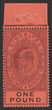 | 2536 Click to enlarge photo | 1903 KEVII £1 dull purple & black/red, LR cnr marginal with plate no 1, wmk Crown CA. VF fresh MLH. Scott 48 cat US$650+. SG 55 cat £650, plus premium for plate no, should be at least £1000+. Beautiful item. (P) | AVAILABLE at A$500 | ||