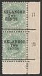 | 2976 Click to enlarge photo | Selangor: 1891 'SELANGOR TWO CENTS' opt QV 24c green, setenant vert pr, top stamp opt SG type 38 & bottom stamp type 39. VF MUH bottom marginal. Scott 22+23 cat US$350++. SG 47+48 cat £450 for M singles, should be at least double, £900 MUH, plus premium for se-tenant pr. (P) | AVAILABLE at A$300 | ||