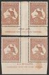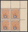 1935 Silver Jubilee 1d-5d Ash imprint blks of 4 with 1d, 3d & 5d all with 'accent' flaw. VFU with Samarai cds. SG 150-153 inc 150a, 152a & 153a cat £400 for singles & should be at least double for imprints £800 = A$1600. Rare imprints with 'accent' flaw. (16). (P) |