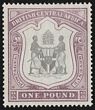 1892-93 Arms £5 sage-green, with sheet wmk letters on whole stamp. Superb fresh UN (ex BSAC archives, which flooded during WWII bombings). Scott 18 cat US$1775+. SG 12(var) cat £1600+, plus premium for scarce wmk. 2019 Ceremuga photo cert. (P) |