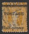 | 7959 Click to enlarge photo | 1877-79 'POSTAGE Half-penny' opt QV Chalon 1d yellow, error opt INVERTED. F-VF U, barred oval pmk. Scott 61b cat US$240. SG 91a cat £275. (P) | AVAILABLE at A$120 | ||