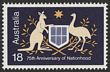 | 2068 Click to enlarge photo | 1971 Animals 18c Kangaroo horiz pr, right stamp with 'mound in front of Kangaroo caused by ink smear'. VF fresh MUH. SG 491(var). ACSC 561(var). | SOLD at A$20 | ||