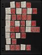 | 41 Click for more photos | 1860-1970"s messy accumulation crammed into 32 pg Prinz s/book inc States - TAS 1859 QV 4d blue imperf, 1880-90s WA Swans to 1/-, Kangaroos (100+) to 10/- inc 6d chestnut 'broken leg', 3rd wmk 2d & 3d inv wmks, KGV ½d-4½d (total 200+) inc 1d red (70), 3d blue (40+), 5d brown (40+), several varieties noted inc 1d red Die II, various 1940 KGVI Defs inc 3d blue (70+), various John Ash imprint blks of 4 - 1d, 1½d, 2d, 1/-, 1948 Robes 5/- & 10/- by Authority imprint blks of 4 (2), Coat of Arms 5/- to £1, 1964 Navigators to £1, decimals inc 5c blue QEII blk of 4 with strong offset on back, 1910-50s Postage Dues (100+) to 5/-. Some State Locals inc WA 6d Supreme Court Fees blk of 9. Interesting Norfolk Island 1968 5c QEII coil perf with offset (not listed). A lot in this accumulation. Mainly G-VFU, about 20% G-VF MLH/MUH. Some tropicalisation. ACSC est cat $7500+. Valuable lot that needs proper sorting. (2500+) (P) | SOLD at A$800 | ||