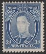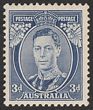 | 1090 Click to enlarge photo | 1937 KGVI 3d blue Die IA, Ash imprint blk of 4. Fresh VF MLH, hinged in margin only. SG 168b(var). ACSC 192za at $1500. (4). (P) | AVAILABLE at A$500 | ||