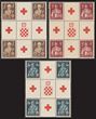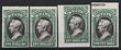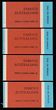 | 1153 Click to enlarge photo | 1949 Arms set 5/-, 10/-, £1 & £2 by Authority imprint left cnr blks of 4, £2 right 2 stamps with roller flaw variety. 10/-, £1, £2 are Fresh VF MUH, 5/- fresh VF MLH. SG 224a-d(var). ACSC 268-271za cat $1860. (16). (P) | SOLD at A$500 | ||