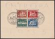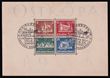| 1124 Click for more photos | 1937 NSW Sesquicentennial set 2d-9d on printed illustrated Registered cover for Airmail Exhibition, commemorative cancel of 5 Oct 1937 tying each value for 1st day of exhibition. SG 193-196. Unusual. AAMC 768bb. | SOLD at A$60 | ||