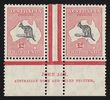 £2 Grey-black & rose-carmine, 'Ash Australian Note & Stamp Printer' imprint pr inc variety 'open mouthed kangaroo' at right. Superb fresh, stamps both MUH, pristine never hinged original gum, MLH in gutter only, bright colours. SG 138(var) cat £8500 as M singles, should be at least double, £17,000 MUH singles, plus premium for imprint multiple. ACSC 58Bza cat $25,000, cat $30,000 MUH normal singles & should be at least +50% premium for imprint & variety = $45,000+. Major rarity so nice & certificate can be obtained on request. (P) |