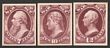 | 3703 Click to enlarge photo | 1909 Lincoln 2c carmine, 1909 Alaska-Yukon Exhibition 2c carmine-lake & 1909 Hudson-Fulton 2c carmine-lake, all horiz imperf prs. Superb fresh MUH, all 4 margins. Scott 368, 371, 373 cat US$205. SG 375, 378, 380 cat £126 for M, should be at least double £252 MUH. (3 prs) (P) | AVAILABLE at A$120 | ||