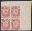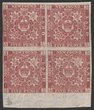 1862-64 Heraldic Flowers 1/- rose-lake, UR cnr marginal blk of 4. Superb fresh 2 MLH/2 MUH, all 4 margins. SG 23 cat £200 for M singles, should be at least double £300+ MUH. Unitrade 23 cat C$446+ both plus premium for blk. (P) |