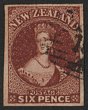 1862-63 QV Chalon 6d black-brown. imperf, no wmk, on Pelure paper. VFU appearance, 4 margins, light barred pmk. CP A5d cat NZ$750. Scott 24. SG 85 cat £350. (P) |