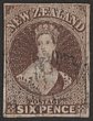 1862-64 QV Chalon 6d red-brown, imperf, wmk Large Star. Superb VFU, 4 large margins, barred oval numeral pmk. Scott 14. CP A5b(5) cat NZ$375. SG 43 cat £180 (P) |