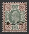 1902 KEVII £1.10/- green & violet opt SPECIMEN. VF fresh MLH. Scott 975 cat US$120 (normal cat US$600). SG 143s cat £130 (normal cat £750). (P) |