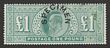 1902-10 KEVII £1 dull blue-green, DLR printing. VFU, Registered pmks. Scott 142 cat US$825. SG 266 cat £825. (P) |
