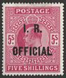 1902-10 KEVII 5/- deep bright carmine, DLR printing. VF MLH. Scott 140a cat US$518. SG 264 cat £900. (P) |