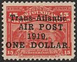 1919 Trans-Atlantic Airmail $1 on 15c bright scarlet, variety no comma after 'AIR POST' & 'A' of Air under 'a' of Trans. Superb fresh MLH. SG 143c cat £375. Unitrade C2c cat C$650. (P) |