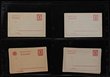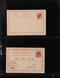 South West Africa: 1897-1919 Postal Cards with 1897 2-hyphen opt 10pf & 10+10pf Double reply cards (UN), plus single card U. 1898-99 single hyphen opts inc 5pf U, 1899 with print date & others. 1900 Yachts 5pf (UN/U), 10pf (2 UN/2 U), 10+10pf Double Reply U with short message. 1906-16 range inc 5pf P18 (2 U), Divided Front 5pf (UN/U), 1919 Double Reply 5pf front only & 10+10pf UN & a Yacht 5pf PTPO colour PPC. Mi cat €525, plus PTPO card est €200 so = €725. (21) |