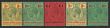 1935 Silver Jubilee 1d-5d Ash imprint blks of 4 with 1d, 3d & 5d all with 'accent' flaw. VFU with Samarai cds. SG 150-153 inc 150a, 152a & 153a cat £400 for singles & should be at least double for imprints £800 = A$1600. Rare imprints with 'accent' flaw. (16). (P) |