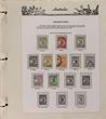 1913-80s collection in Seven Seas album with illustrated hingeless pgs. Inc Kangaroos to 2/- maroon, KGV Heads to 1/4, fairly complete 1935-40 Commemorative sets complete, 1938 Robes 5/- to £1, both paper sets, 1949 Arms 5/- to £2, 1964 Navigators 4/- to £2 set with both papers, sparse in decimals, few errors in classifications. Mainly FU-VFU, about 10% F-MLH. SG cat £1350+ = A$2700. ACSC cat $2200+. Reserved at the replacement cost of the album. (400+) |