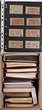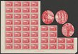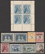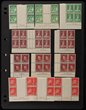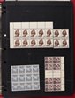 1913-65 collection/accumulation of mainly pre-decimal imprint/plate blks in hagner binder. But also NWPI Kangaroos 2d to 5/- & KGV ½d-4d violet 5th setting inc KGV 2d orange & scarlet perf OS, also hagner of mainly Kangaroos Used on piece inc 2d, 6d & 1/- 1st wmk with scarce pmk English Mail Out 18 JE 13, 5/- 3rd wmk on piece, 1929 1½d Swan plate numbers 1-12 singles, also pr with 're-entry to neck & TR', others inc 1931 Airmail 6d grey-brown imprint strip of 3 & comp set of plate number blks of 4 of 2d scarlet Cable (16 - upper left & right, lower left & right), various duplicated later imprint blks (250+) of 4, diff positions inc 1940 AIF to 3d, 1937-47 Definitives to 1/K, 1945 Gloucester Visit, 1946 Mitchell, 1947 Newcastle etc, duplicated singles inc 1959-66 Definitives to 3/- & 1964 Birds to 3/-, mostly 5 of each & Commems inc 2/- (25) & 2/3 (20+). Many of the imprint blks have potential varieties, these have not been checked. Mostly F-VF MUH/MLH, few F-VFU. ACSC cat $5000+. Rare to find pre-decimal imprint blk quantities. (1000+) |