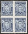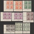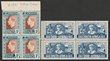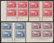 1937 KGVI 2nd Coronation set 1c-48c blks of 4 inc 14c with & almost w/o wmks, various perfs. VF fresh MUH. SG 257-67 cat £240. Unitrade 133-43 cat C$236 -both as singles, both plus another £300/C$300 for wmk variety, so £540 or C$536. (11 blks) |