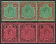 1937-49 KGVI variety selection inc 1937 KGVI Coronation 1/- blk of 4, 'missing Hyphen' 1941 War Effort 1d blk of 4 with 'Stain on Uniform' & 3d blk of 4, 'Cigarette flaw' 1949 Natal setters 1½d, 2 blks of 4 with 'extended rigging' & with 'pennant flaws'. 1949 UPU 3d with 'lake in East Africa flaw' & 3d with 'serif on C' blk of 4. Most VF fresh MUH. SG cat £410++ plus premium for positional multiples. (7 items). (P) |