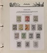 1913-65 collection on Seven Seas pages inc Roo 1st wmk to 1/-, 2nd wmk to 1/-, 3rd wmk to 5/-, CofA wmk to 10/-, KGV comp single wmk to 1/4 inc 1d red Die II & III, SM perf 14 comp to 1/4, CofA comp to 1/4, 6d engraved Kooka, 1931 Kingsford Smith comp inc opt OS,1930-40s commems comp, 1937, Robes 5/- to £1 inc both papers, 1949 Arms comp to £2, 1964 Navigators comp set of 8 to £2. Mainly G-VFU, some mixed earlies. ACSC cat $4900. (250). |