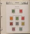 1927-65 mostly M/MUH collection in Seven Seas hingeless leaves with 1914 Kookaburra 6d Engraved FU, 1932 Lyrebird 1/- & 1934 Airmail 1/6 claret no wmk MUH. 1931 Kingsford Smith 2d opt OS CTO & 1932 Bridge OS opts VFM, 1934 VIC Cent sets (both) to 1/- M. 1935 ANZAC 1/- & KGV SJ set to 2/- F-VFM, 1936 SA MLH, 1937 NSW Sesqui MUH sets. 1937 KGVI Robes to £1 thick & thin papers. VFU. 1940 AIF set & 1949 Arms to £2 F-VFM. 1951-65 near comp MUH inc 1950s KGVI Defs to 2/6 Aborigine no wmk, QEII Sidefaces to 1/7 brown, 1959 QEII Pics to Cattle 5/- white paper. 1963 Navigator set of 6 to £2 King, 1964 Birds & all Commem sets & singles. F-VF M/MLH/MUH as noted. ACSC cat $1800, retail similar, plus another $160 for the hingeless album. (277) (P) |