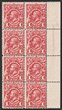 1913 KGV Engraved 1d carmine-red imprint blk of 8 right side. Imprint is very faint & fades after 'COM', unusual, possibly plate 4. Fresh VF 6 MUH, 2 MLH. SG 17(var). ACSC 59C(4)zc cat $350. (8) |