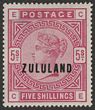 1888-93 'ZULULAND' opt QV 5/- rose. Superb fresh M, perfect centring & deep colour. Scott 11 cat US$725. SG 11 cat £750. Rare genuine as only 998 issued. Exp Friedl & others, while new certificate can be obtained on request. (P) |