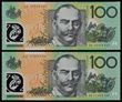 | 12036 Click for more photos | $100 Stevens-Henry 1st prefixes AA10 & AA11. UNC. R-621bF, 621cF. (2) | SOLD at A$220 | ||