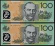 | 12040 Click for more photos | $100 Stevens-Parkinson 1st & last prefixes AA14, JK14. UNC. R-622bF, 622bL cat $1025. (2). | SOLD at A$425 | ||
