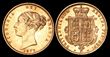 | 12205 Click to enlarge photo | 1877 Die 28 QV Young head ½ Sovereign. Golden copper tone UNC. S-3860D cat £1100. (P) | SOLD at A$800 | ||