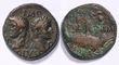 | 13030 Click to enlarge photo | Augustus and Agrippa. Ca. BC 16/15. Bronze Dupondius (12.59g).IMP DIVI F. Heads back to back of Augustus r. bare, and Agrippa left wearing rostral crown. We note a counterstamp (I D ?) on the head of Augustus which appears to be ancient. Rev. COL NEM, crocodile r., chained to palm, wreath with long ties above, two palms below. VF/aVF with green patina and minor deposits. S. 1729-1731. (P) | SOLD at A$425 | ||