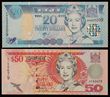 | 13508 Click for more photos | $20 ND (2002), $50 ND (1996), ND (2002) QEII sig Narube. $20 flick at right, both UNC. Scarcer signature. P-107a, 100b. B518a, 513b cat US $195 = A$303. (2). | SOLD at A$90 | ||