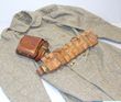 1939-1945 Despatch Rider & associated clothing & equipment collection. Vulcanized rubber 'Don R' overcoat & over trousers (weatherproof) both nicely WWII tagged; tropical KD tunic MX marked; cotton KD beret; Patt 37 belt & holster & pistol ammo pouch; web waist belt; tiny instrument pouch. G-VGC. (9 items) |