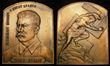 ca1942 Overcoming the bondage of Nazi tyranny. Josef Stalin's portrait 'Democracy Honours a great leader' undated plaque. C-D/6. Bronze 58 x 73mm. Ron Byatt the owner of Amor-Sanders told Dave Allen that these plaquettes (along with medallion c:1940/1) where proposed by the trade union movement as a commercial (& propaganda) venture. This was never followed through which explains the rarity of such items. UNC. Ex Dave Allen collection. Large impressive medal. |
