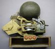 Allied WWII wartime equipment lot. Inc green enamel private purchase water bottle, Patt 37 water bottle carrier & blue enamel bottle, patt 37 carrier, knife & fork set, rank slide, pr of ankle gaiters, cup, flare pistol frame, para/despatch rider/tank corps helmet shell, pattern 1923 scarce pistol holster & Simpson made ammo tin for. 303 MG ammo. GC. (Total 11items) |